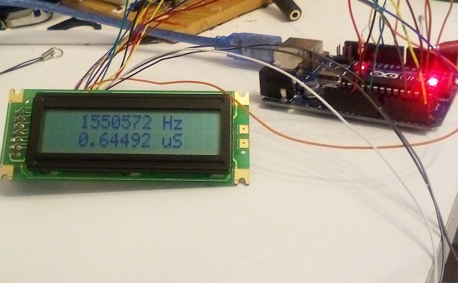 In CRO we use f=1/T formula to calculate frequency.Here also the same concept is used to calculate frequency. where. T is the time period of one cycle of signal in microseconds(us). In the program of Arduino Frequency counter we used f=1000000/pulseTotal.. Where. pulse Total is nothing but, a Time period of Signal(T). microseconds(us)=10^-6 The pulseIn() function can count pulses with a time period ranging from 10 ฮผS to 3 minutes. A circuit diagram of the frequency counter using Arduino is given below. Potentimeter R1 is used to adjust the contrast of the LCD screen. Resistor R2 limits the current through the back light LED. Definition. Frequency is the number of complete cycles per second in alternating current direction. The standard unit of frequency is the hertz, abbreviated Hz.. Frequency Measurement Frequency Measurement is carried out by measuring the number of cycles in one second, this method requires time of one second. Other method is to measure time period of one cycle F = 1 / T.